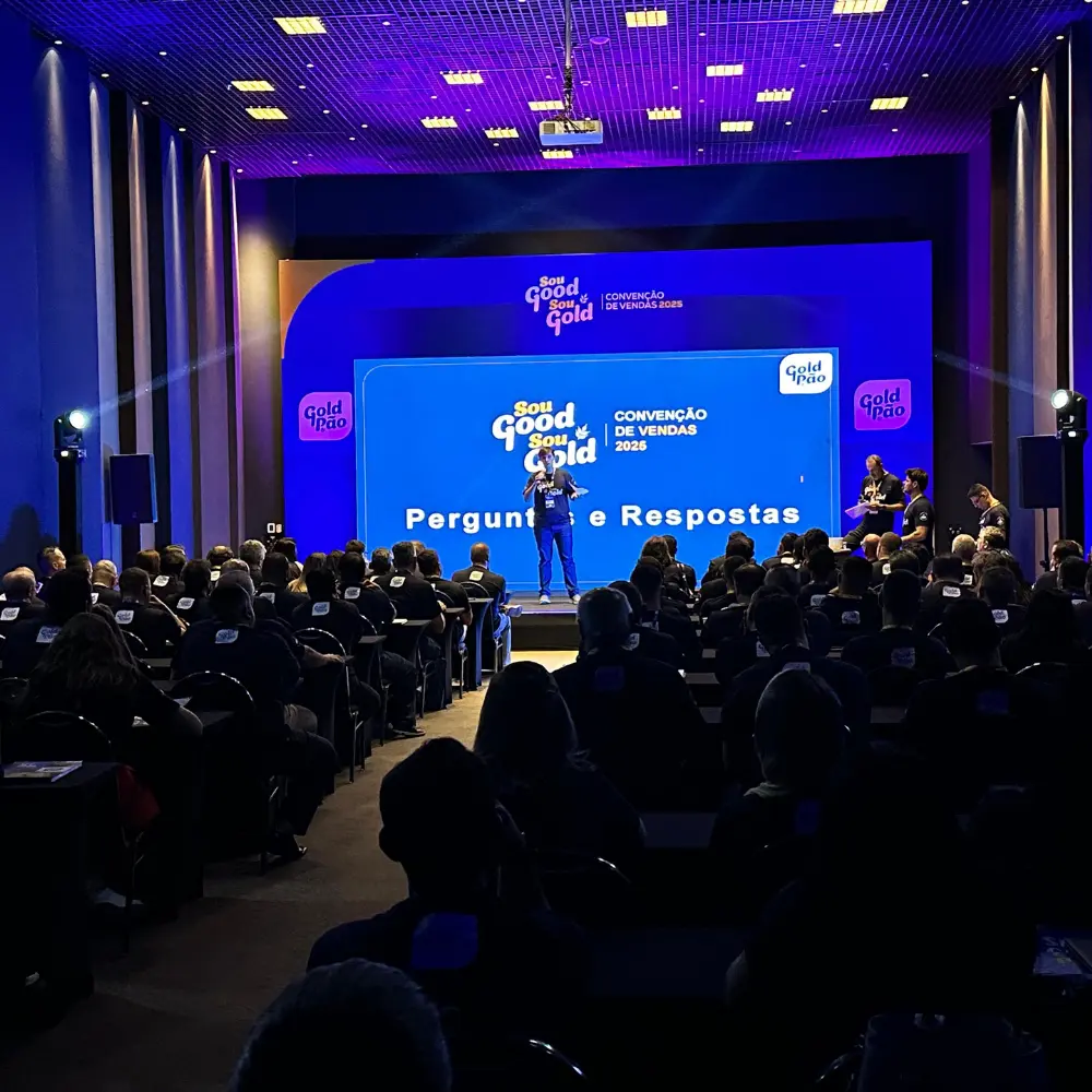 O painel de LED valoriza o palco e chama a atenção do público, criando um cenário moderno e profissional para eventos corporativos.